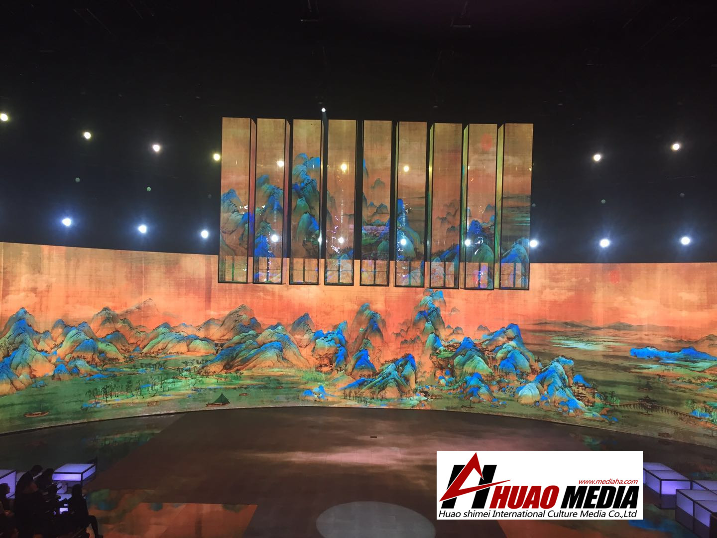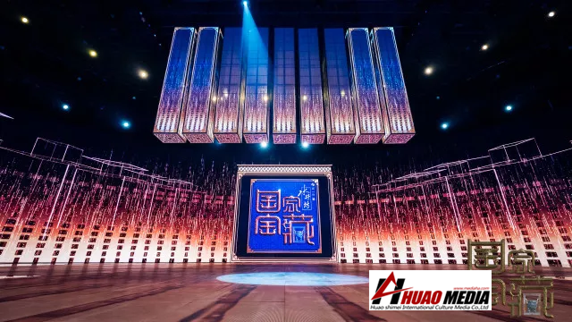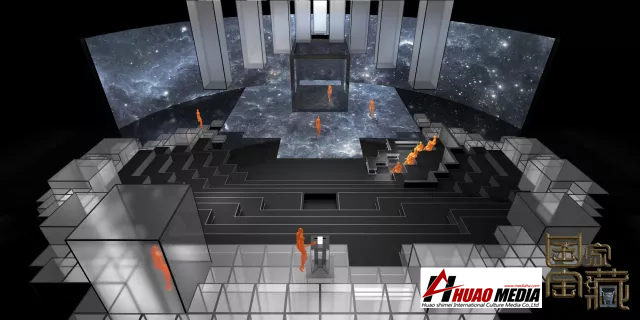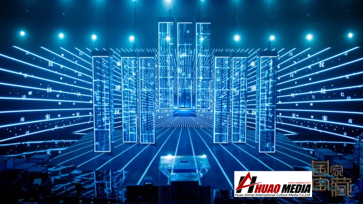 在舞美設計中,使用了LED開合車臺、全息影像技術、天軌吊裝及移動設備、冰屏柱等技術,使整個舞臺在中國風與高科技的完美結(jié)合中,將中華民族文化的魅力淋漓盡致的展現(xiàn)出來。